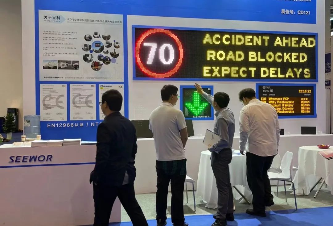 10月(yuè)16日(rì),第29屆智能(néng)交通(tōng)世界γβ大(dà)會(huì)在蘇州國(guó)際博覽中心正式開(kāi)幕,本屆大(dà)會(huìφ¥)主題是(shì):智能(néng)交通(tōng),☆¶美(měi)好(hǎo)生(shēng)活。本次大(dà)會(huì),顯科(kē)将重點展®®™示自(zì)主設計(jì)研發的(de)透鏡可(kě)變信息情報 €(bào)闆,該透鏡通(tōng)過歐洲EN1296&Ω÷ε6認證,經過透鏡設計(jì),低(dī)耗節能(néng),有(yǒu)©€效降低(dī)光(guāng)污染,并提升屏體(tǐ)顯示效β ≥果;連同乘客顯示站(zhàn)台屏,交通(tōng)小(xiǎo)≠∑ 點間(jiān)距等産品系列隆重亮(liàng)相(xiàng)。