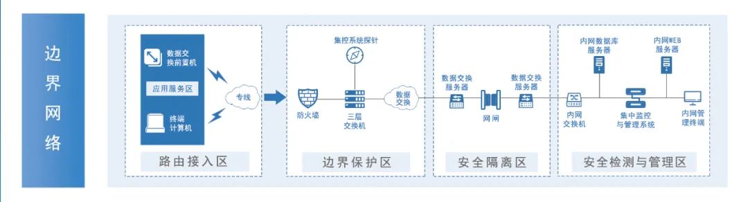 邊界網絡(Boundary Network)是(shì∑✘)指網絡中連接不(bù)同網絡域的(de)設備和(hé)技(jì)術(shù),其中≈"包含防火(huǒ)牆、網閘、服務器(qì)、交換機(jī)等系列設備。