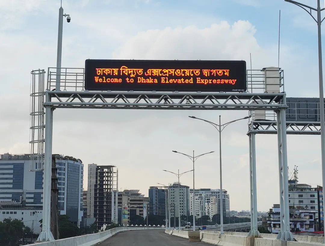 2023年(nián),是(shì)中國(guó)與孟加拉國(☆®guó)簽訂“一(yī)帶一(yī)路(lù)”倡議(yì)的(de)第7個(gè) §年(nián)頭。9月(yuè)2日(rì),孟加拉國(guó)首條高(gāo)架快(✘ ₹kuài)速路(lù)——達卡機(jī)場(chǎng)高(gāo)架快(kuài)速路(lù)π↔項目(一(yī)期)正式通(tōng)車(chē)運營,全線使用(yò ↑₽®ng)的(de)LED可(kě)變情報(bào)闆均由顯科(kē)提供。