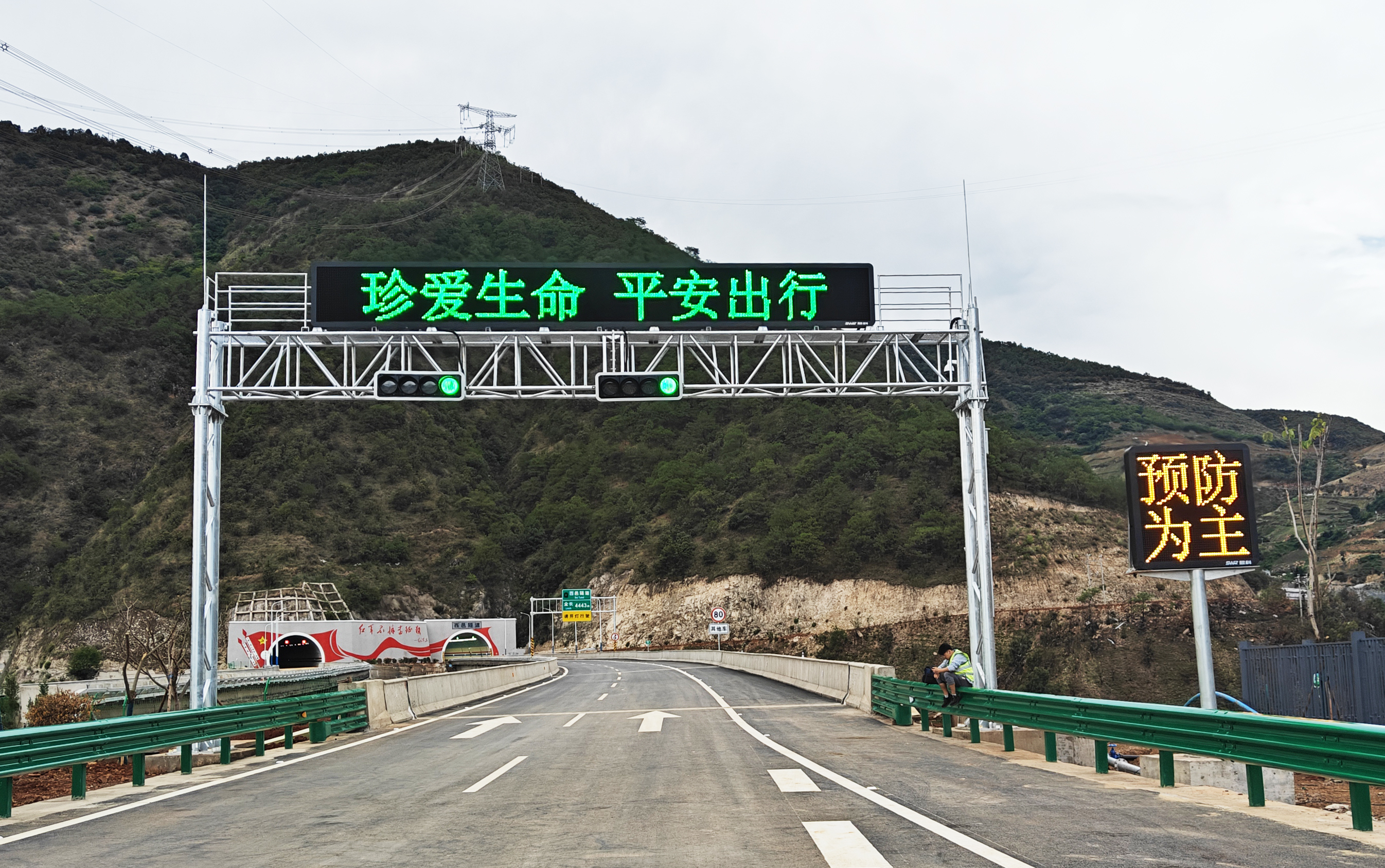 12月(yuè)29日(rì),雲南(nán)施勐高(gāo)速公路(lù)施甸至姚"λ關段正式通(tōng)車(chē)運營。施勐高(gāo)速起于Ωφ¶≥保山(shān)市(shì)施甸縣,止于臨滄市(shì)勐簡鄉(xiāng),全線均使用(•<$yòng)顯科(kē)可(kě)變情報(bào)闆産品.