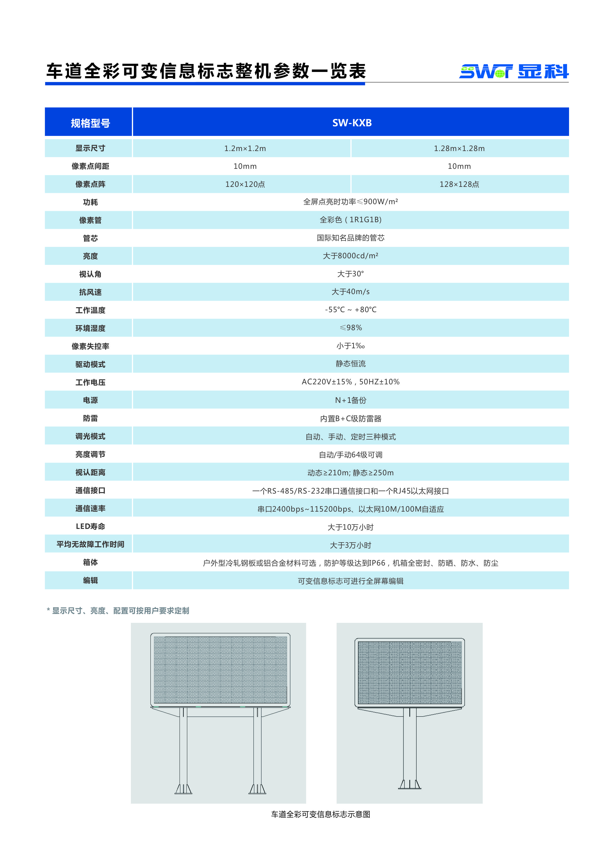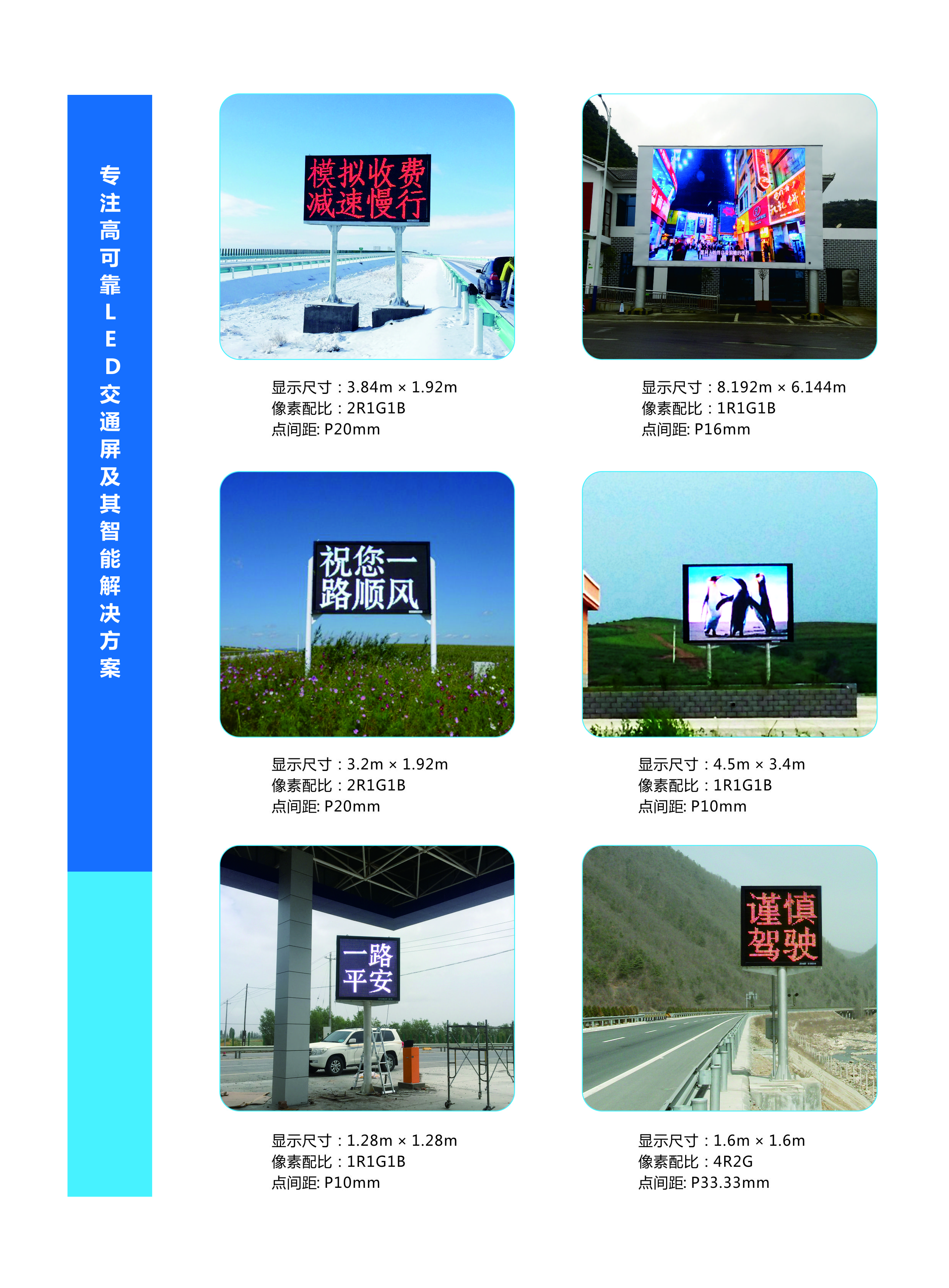☆點間(jiān)距為(wèi)10mm(像素管1紅(hδóng)1綠(lǜ)1藍(lán))。 ☆顯示闆每平方米亮(liàng)度:≥8000cd。 ☆可(kě)變信息标志(zhì)可(kě)進行(xíng)全屏幕編輯。